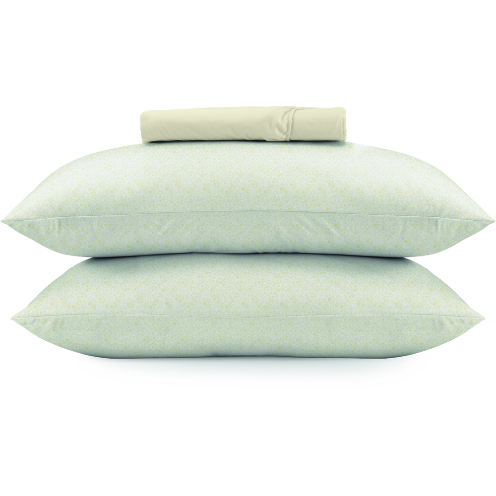 Lave o jogo de cama em temperatura máxima de 40°C, utilizando o ciclo normal da máquina de lavar. Não utilize alvejante em nenhuma hipótese. Caso utilize secadora, prefira temperaturas baixas. É permitido passar o tecido a ferro, mas apenas em temperatura baixa. Não lave a seco.