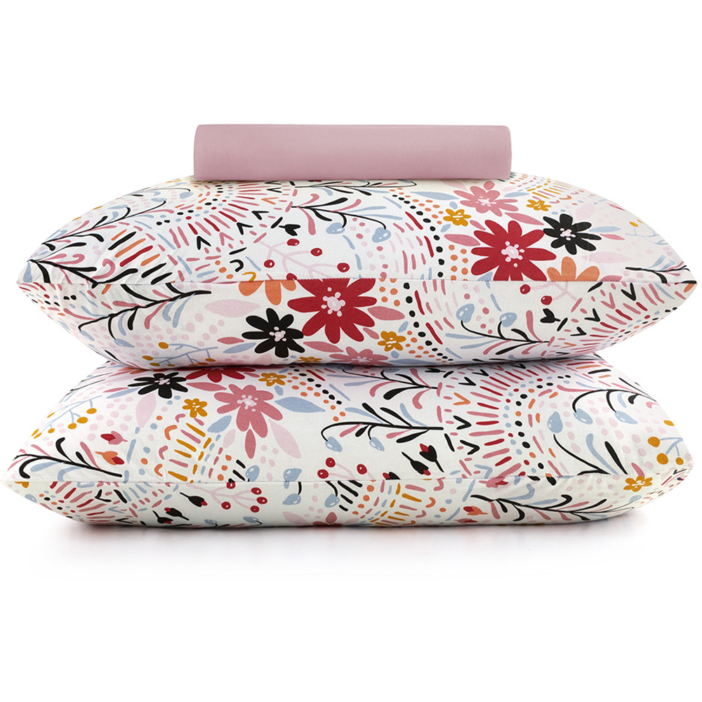 O Jogo de Cama Chloé é confeccionado com um padrão inigualável de qualidade, utilizando a suavidade do fio penteado de 100% algodão. A malha de alta qualidade proporciona um toque delicado, enquanto o fio penteado assegura que o conjunto mantenha sua integridade mesmo após múltiplas lavagens. O algodão, sendo naturalmente respirável e hipoalergênico, contribui para um ambiente de sono saudável e rejuvenescedor. Este conjunto é composto por três peças essenciais: lençol com elástico e duas fronhas. A estampa Chloé, com sua inspiração na elegância clássica e beleza atemporal das flores, adiciona um toque de refinamento ao seu quarto. As cores suaves e o design cuidadosamente elaborado complementam uma variedade de estilos de decoração, criando um ambiente convidativo e aconchegante.