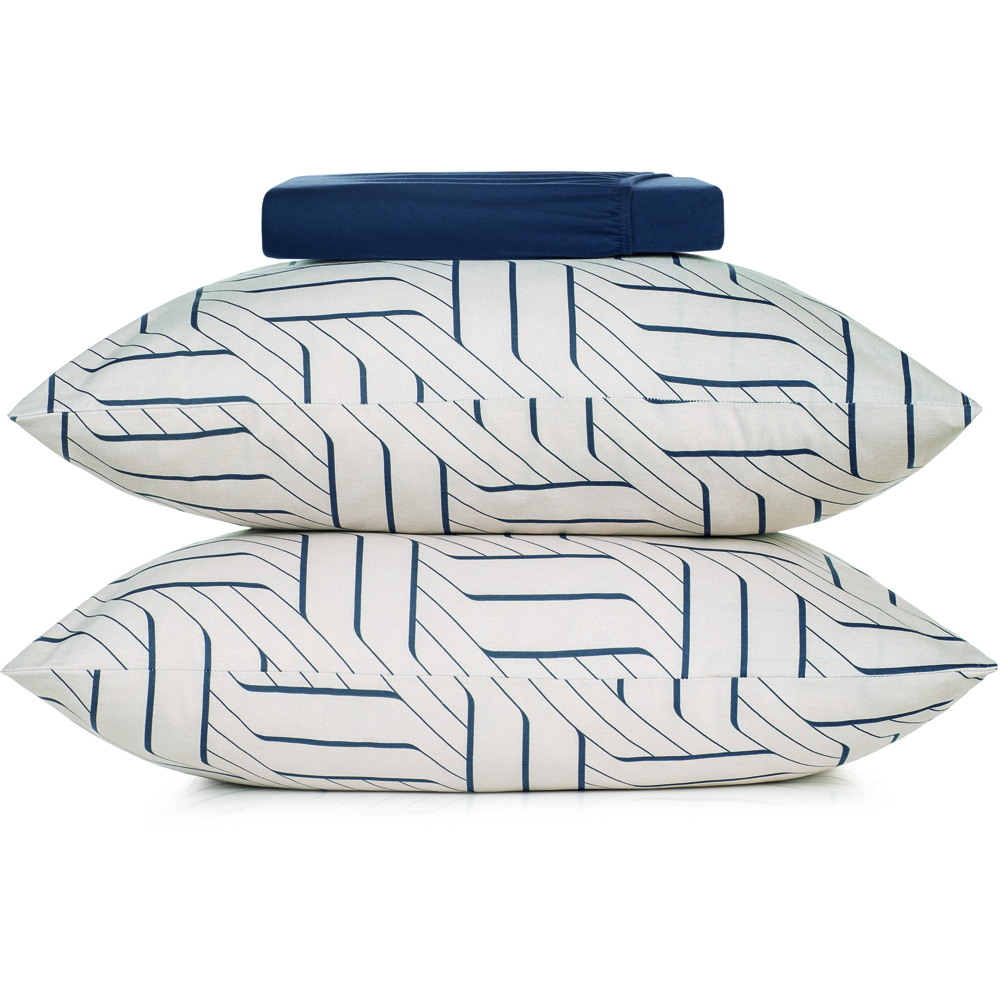 Jogo de Cama Altenburg Zigue Malha Fio Penteado 3 Peças Queen Marinho