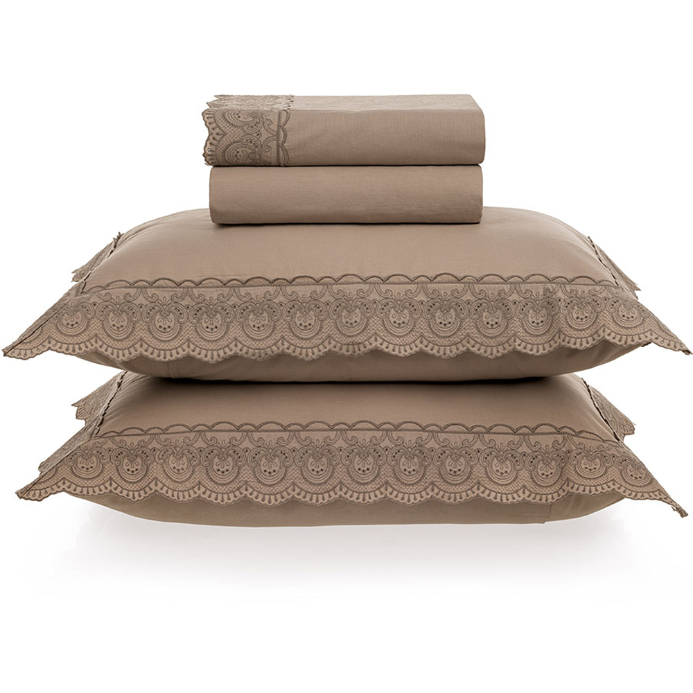 Jogo de Cama Karsten Alice 200 Fios 4 Peças Queen Bege e Castanho