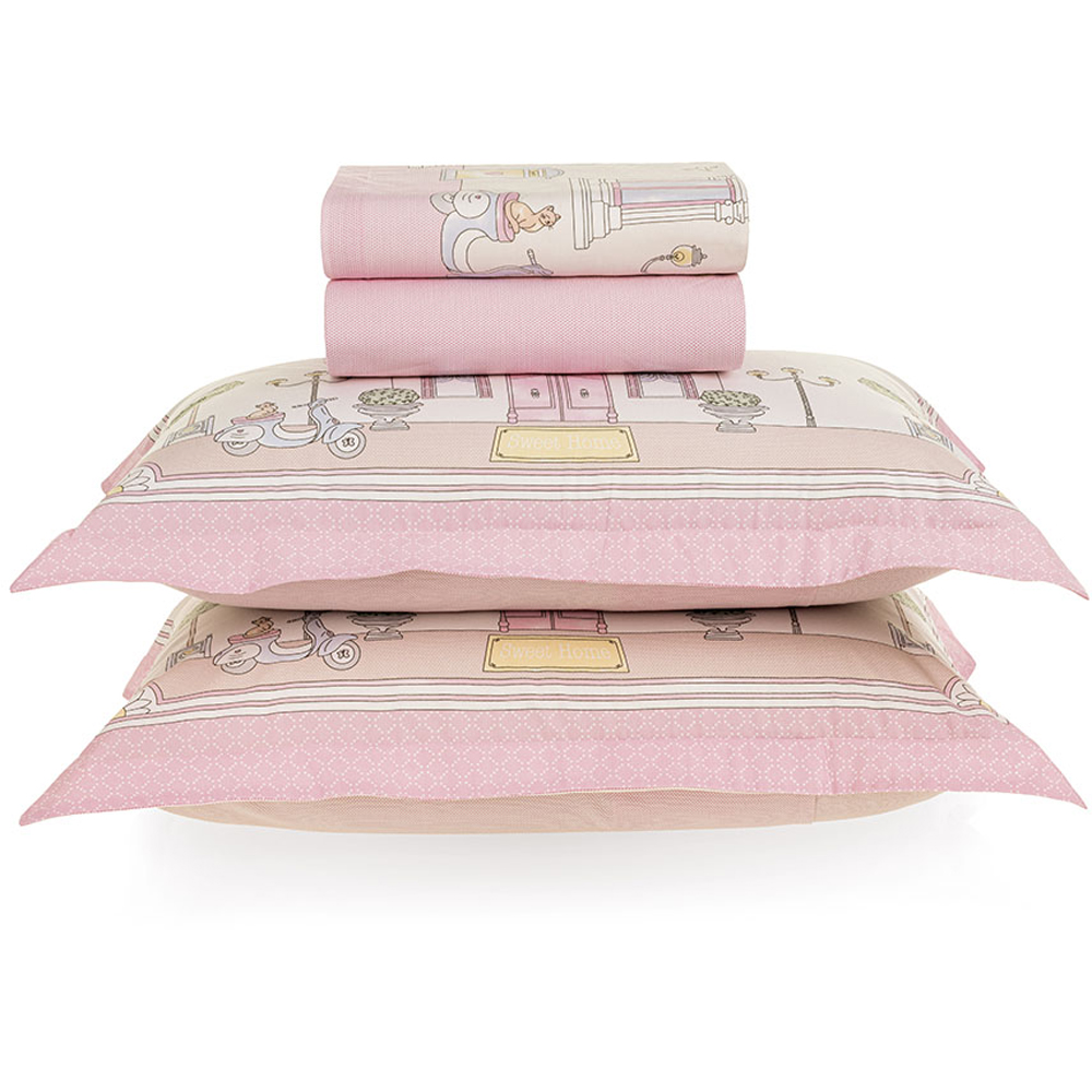 Jogo de Cama Karsten Flory 200 Fios 4 Peças Casal Rosa