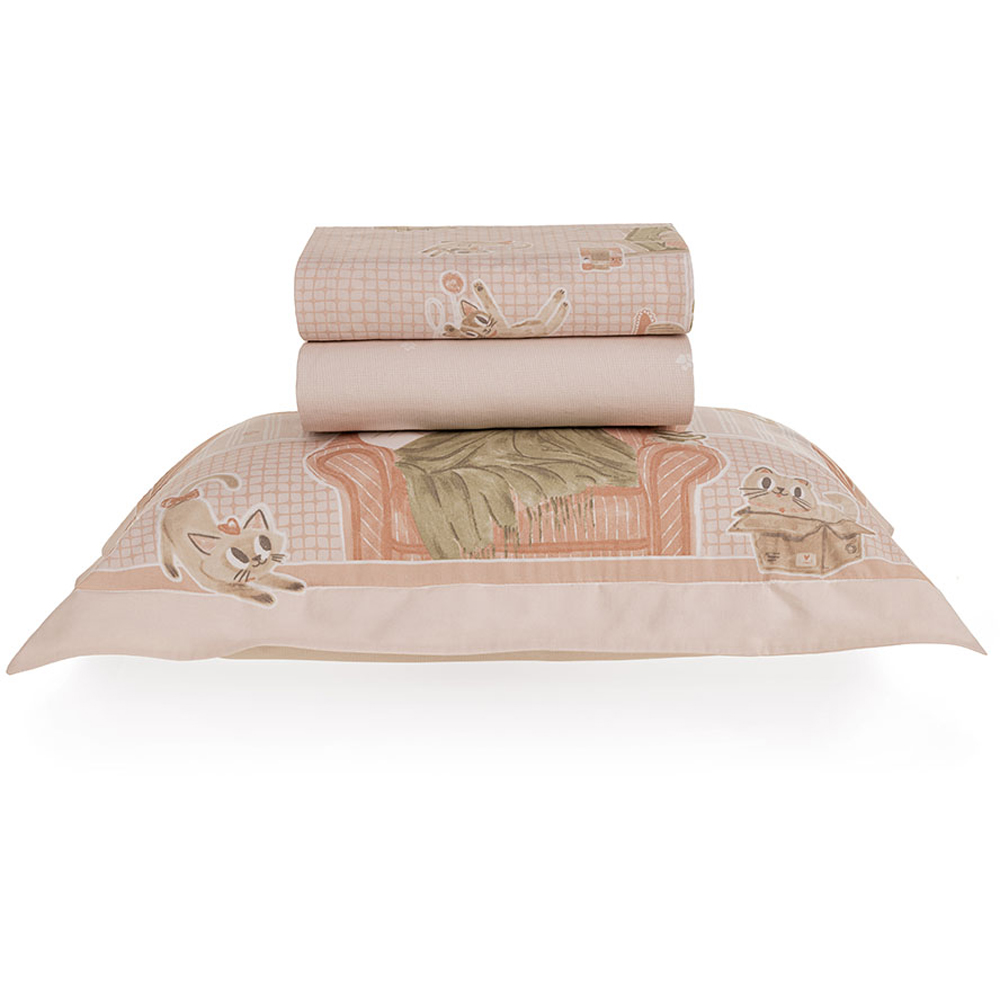 Jogo de Cama Karsten Gatos 200 Fios 3 Peças Solteiro Rosa