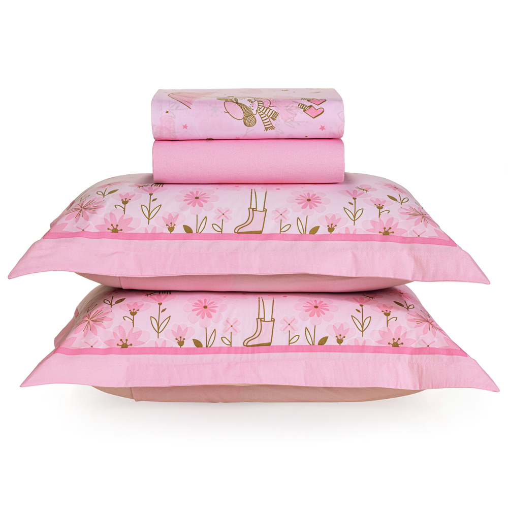 Jogo de Cama Karsten Lily 200 Fios 4 Peças Casal Rosa