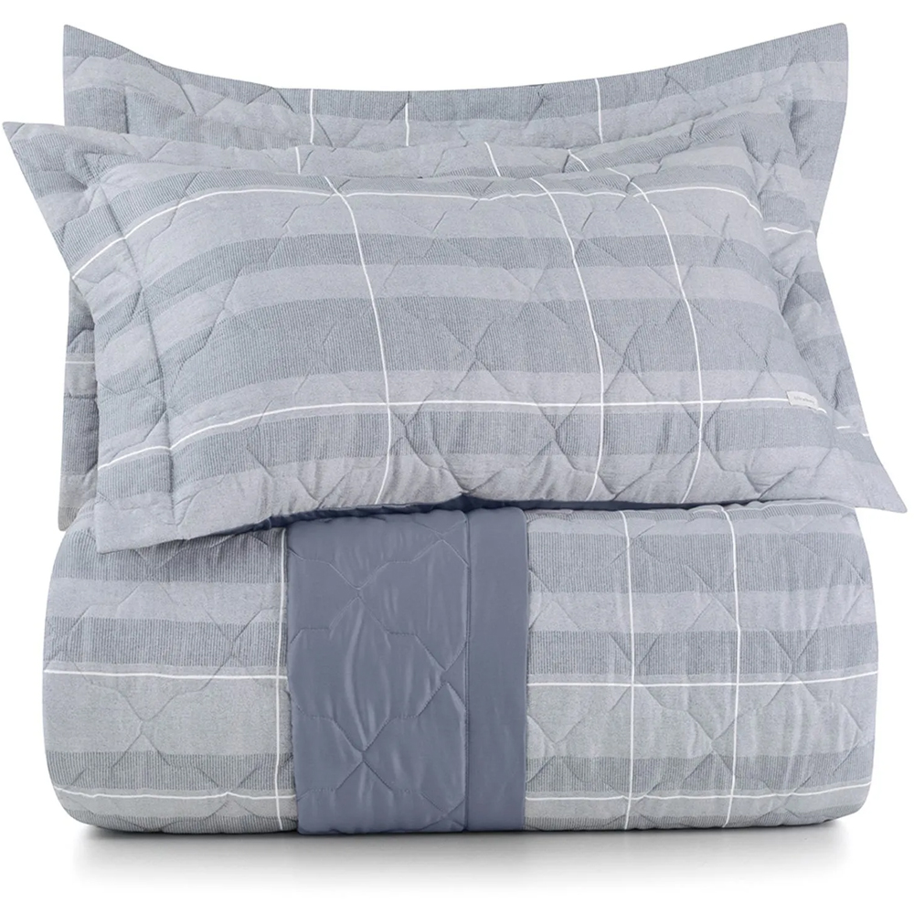 Jogo de Colcha Altenburg Pauta 300 Fios 3 Peças Queen Azul