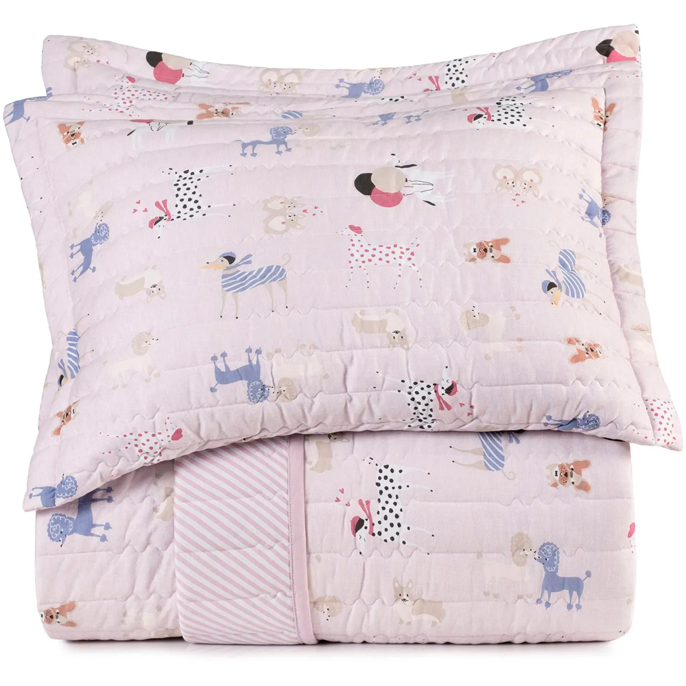 Jogo de Colcha Altenburg Pet Chic Mundo Kids Malha 3 Peças Casal Rosa