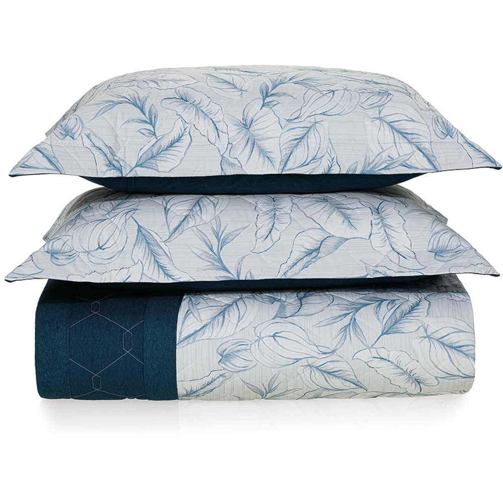 Jogo de Colcha Karsten Arboris 200 Fios 3 Peças Queen Azul