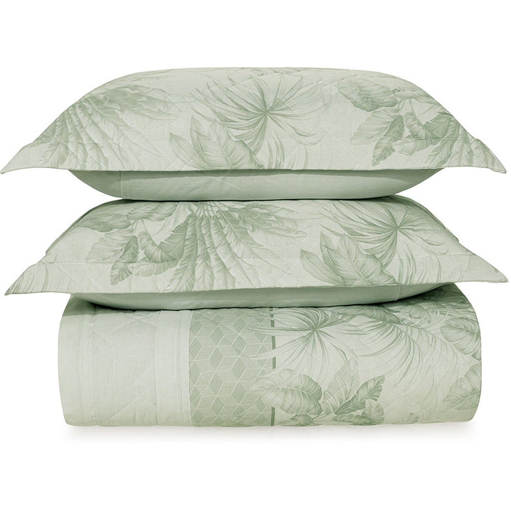 Jogo de Colcha Karsten Floriano 160 Fios 3 Peças Queen Verde