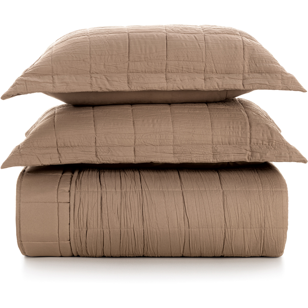 Jogo de Colcha Karsten Valena Plissado 3 Peças Queen Marrom