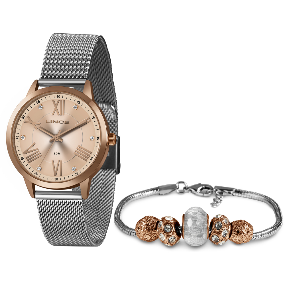 Kit Relógio Lince Shine LRT4651L KX56R3SX Prata Feminino